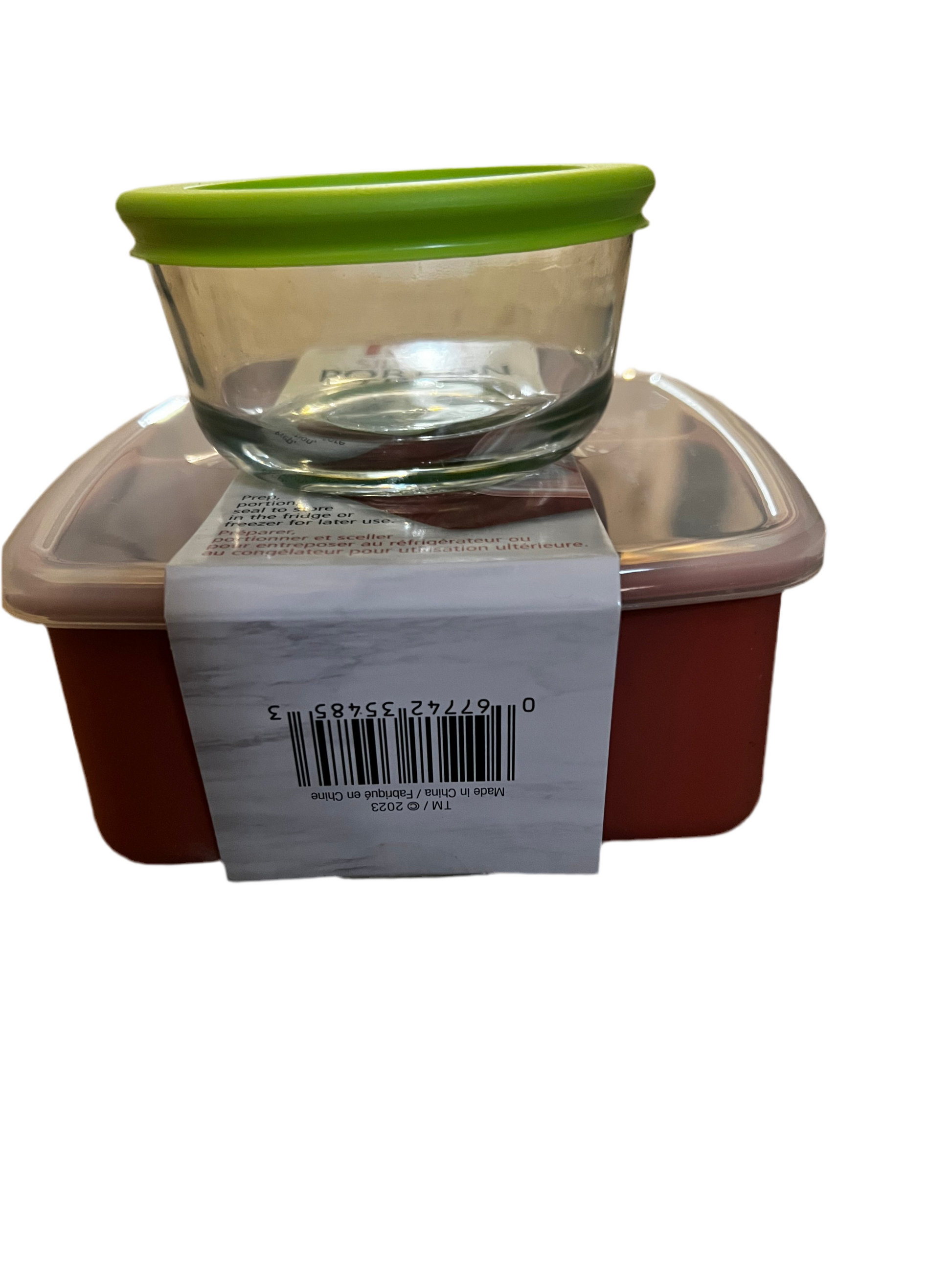 (2) Joie Silicone Portion Tray Heat resistance BPA free, 4 cup tray & two small glass containers