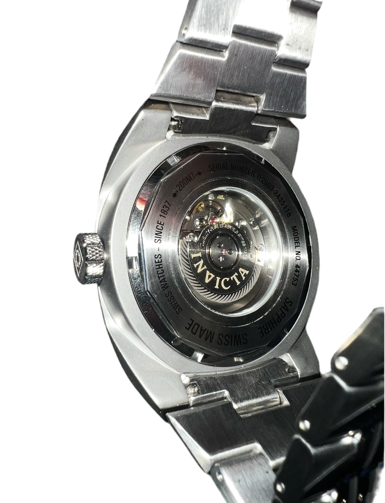 The **Invicta Swiss Made Ronda R150 Caliber Automatic Men's Watch (Model 44753)** is a sophisticated timepiece featuring a **52mm stainless steel case** and the **Swiss-made Ronda R150 automatic movement**. This movement is known for its precision and durability, with 25 jewels and a power reserve of approximately 40 hours. The watch is also water-resistant up to 200 meters, making it suitable for various activities.